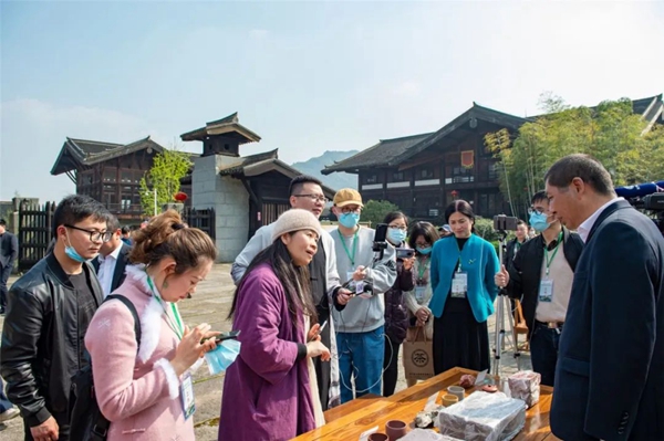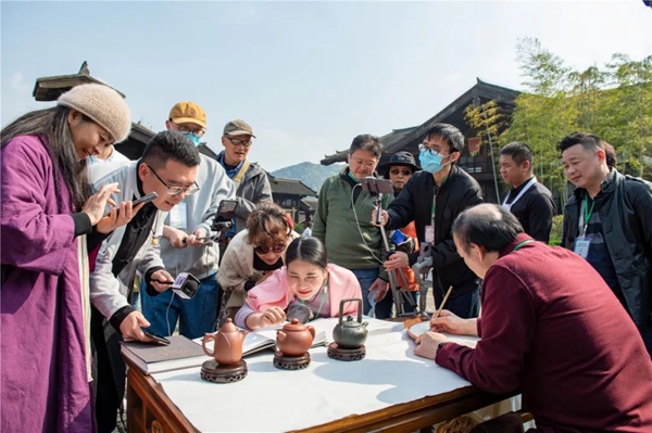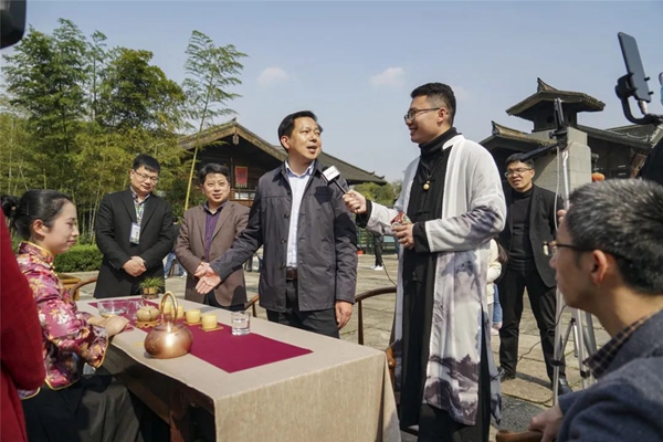 “這是我們全媒體直播和線上銷售聯動的全新嘗試,在活動開始前,我們在全縣政務平臺@長興發布微博矩陣發起#紫筍茶的前世今生#話題,閱讀量已近2000萬。直播開始半小時,觀看人數就已經突破了60萬。”長興縣委宣傳部副部長、文聯主席劉月琴說,“這場跨越千年的古今對話,用文藝搭臺,經濟唱戲,不僅影響力和經濟效益遠超于傳統的線下活動,也激勵著我們不斷傳承創新,讓越來越多的人感受長興茶文化、茶旅游、茶產業的豐富和多彩?!?/p>