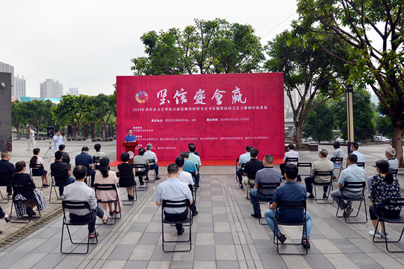 5月21日,由市文聯(lián)及市美協(xié)、市書協(xié)、市攝協(xié)、市民協(xié)、市文藝志愿者協(xié)會主辦的“堅信愛會贏——2020年重慶市文藝界抗擊新冠肺炎疫情主題美術書法攝影民間文藝作品成果展”在市文聯(lián)美術館開展。展覽精選近200件美術、書法、攝影和民間文藝作品,生動、鮮活、真實地記錄了全國人民抗擊疫情的全景式畫卷,并在學習強國、重慶文藝網(wǎng)、重慶文藝微信公眾號等新媒體平臺推出,致敬抗疫英雄,共譜愛的贊歌。市委宣傳部常務副部長薛竹參加開幕式并宣布展覽開幕。市文聯(lián)黨組書記、副主席陳若愚發(fā)表講話。市文聯(lián)黨組成員、副主席龍川主持開幕。市委宣傳部相關處室、市文聯(lián)機關相關處室、部分市級文藝家協(xié)會負責人,參展藝術家及部分群眾代表參加開幕式。