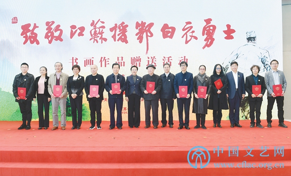 4月16日,“致敬江蘇援鄂白衣勇士”書畫贈送儀式在江蘇省現代美術館舉行,現場為10位藝術家代表頒發捐贈證書