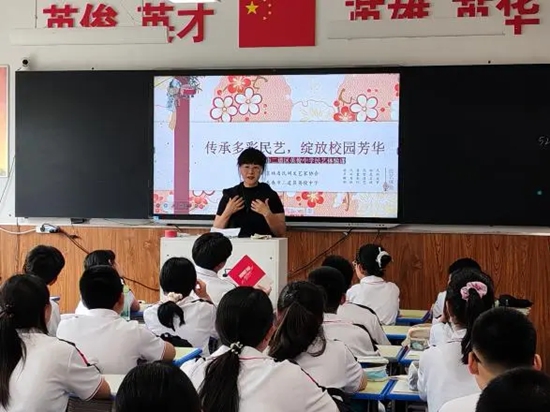 6月12日,由吉林省民間文藝家協會主辦、長春市二道區英俊中學承辦的“傳承多彩民藝 綻放校園芳華”民藝體驗課在英俊中學開講。來自吉林省民協的民間文藝志愿者們走進七年級的教室,通過生動活潑的課程,讓同學們感知傳統文化的魅力。